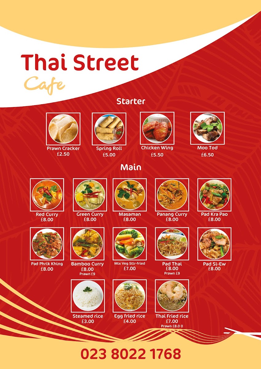 The Thai Street Cafe Menu at 3 Pound Tree Rd, Southampton SO14 1ND, United Kingdom, offers an inviting journey through Thailand’s vibrant street food scene, executed with authenticity and flair. As someone who appreciates the nuances of Southeast Asian cuisine, I found this spot to be a standout among local Thai eateries.